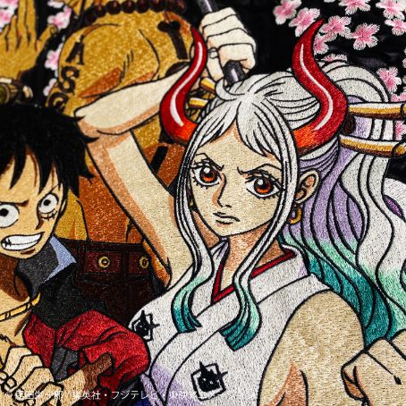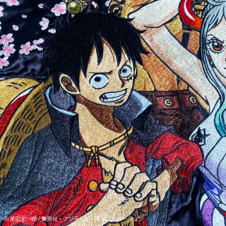 エースを背景に、ルフィ/ ヤマトを100 万針を超える刺繍で表現!!