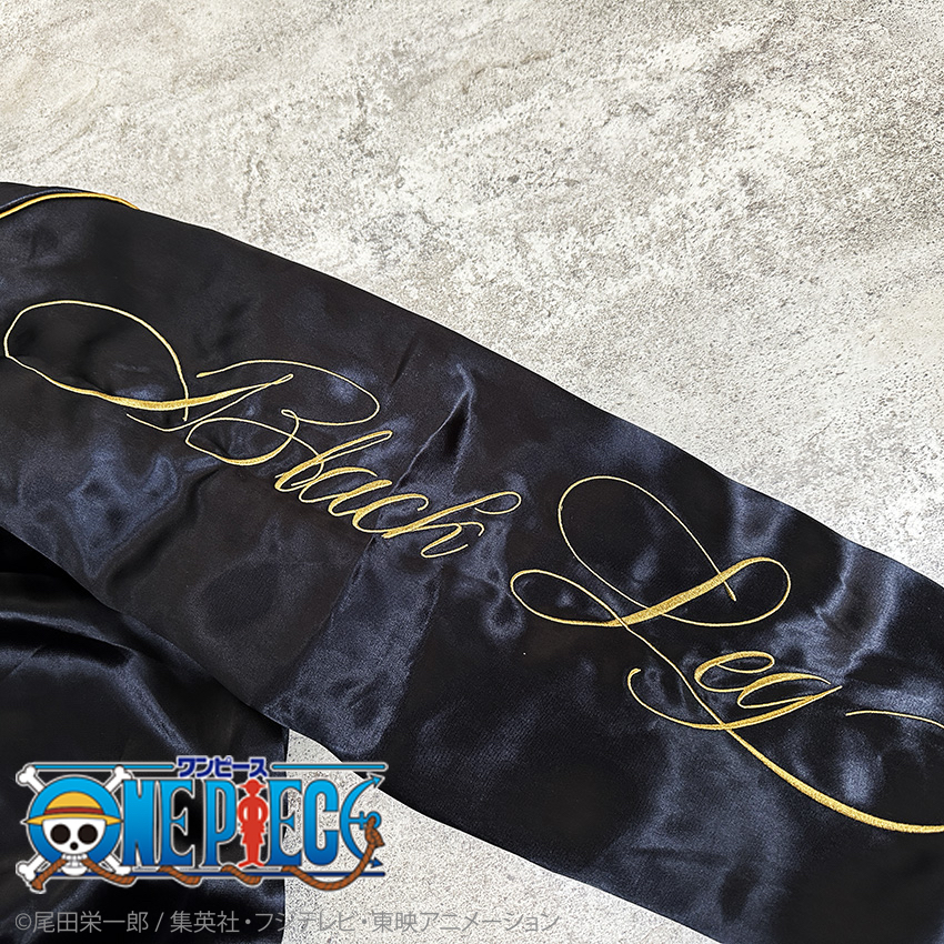 リバーシブル裏は、「【ゾロ】海賊狩りのスカジャン」と対になるようなデザインになっており、袖には「Black Leg」の文字を刺繍。